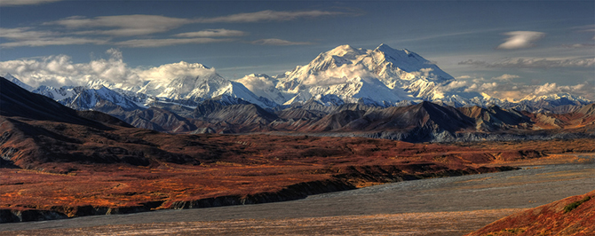 Anchorage nach Talkeetna | Anchorage ist der Hauptsitz der Alaska Railroad und hier beginnt die Reise nach Fairbanks. Nach einigen Kilometern führt die Reise durch die dichten Birkenwälder von Eagle River und Chugiak zu den Flüssen Knik und Matanuska, in deren weitläufigem Wassereinzugsgebiet sich Wildtiere wie Elche, Bären, gelegentlich Wölfe und zahlreiche Wasservögel tummeln. Etwa 40 Meilen von Anchorage entfernt liegt das Matanuska Valley, das landwirtschaftliche Zentrum Alaskas und Heimat der Städte Palmer und Wasilla. Knapp südlich von Talkeetna, 70 Meilen weiter, eröffnet sich der erste Blick auf den Mt. McKinley, den höchsten Berg Nordamerikas. Der Zug hält zum ersten Mal in Talkeetna, einer kleinen Stadt mit Bergbaugeschichte und heute ein beliebter Ausgangspunkt für Bergsteiger zum Mt. Denali.