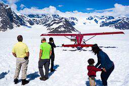 Erweitern Sie Ihre Rundflüge um eine Gletscherlandung und erleben Sie eine einzigartige Expedition. Die Passagiere landen in der Regel auf dem Ruth-Gletscher, der sich im Sheldon Amphitheater befindet, auf einer Höhe von 5600 Fuß. Andere beliebte Landeplätze sind der Kahiltna-, der Pika- oder der Eldridge-Gletscher. Eine Gletscherlandung dauert zusätzlich 30 Minuten (15 Minuten für die Erkundung zu Fuß und 15 Minuten für Landung und Start).