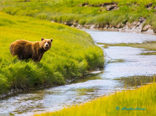 Alaska Bear Viewing im Lake Clark National Park ist das ultimative Bärenbeobachtungserlebnis. Auf der Westseite des Cook Inlet gegenüber der Kenai-Halbinsel befindet sich der Lake Clark National Park and Preserve in einer atemberaubend schönen Landschaft. Auf einer Fläche von 56.000 Quadratmeilen, 100 Meilen südwestlich von Anchorage, erstreckt sich ein natürliches Kaleidoskop aus hohen Gebirgsketten, Gletschern, Granitfelsentürmen, tosenden Wasserfällen, einer zerklüfteten Küste und dem größten See Alaskas. Diese Umgebung direkt am Meer ist der ideale Lebensraum für Bären. In den Bächen, die durch die Prärien fließen, tummeln sich viele Silberlachse, die den ganzen Sommer über Braunbären anlocken. Das hohe Gras und die Kulisse der Neacola Mountains sorgen für die besten Fotos.